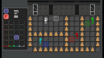 Makes the guard turns left.- Move all guards to tiles of the same color to win.